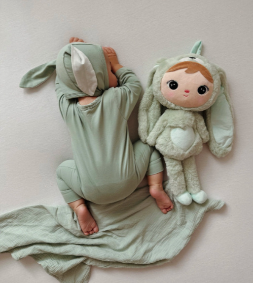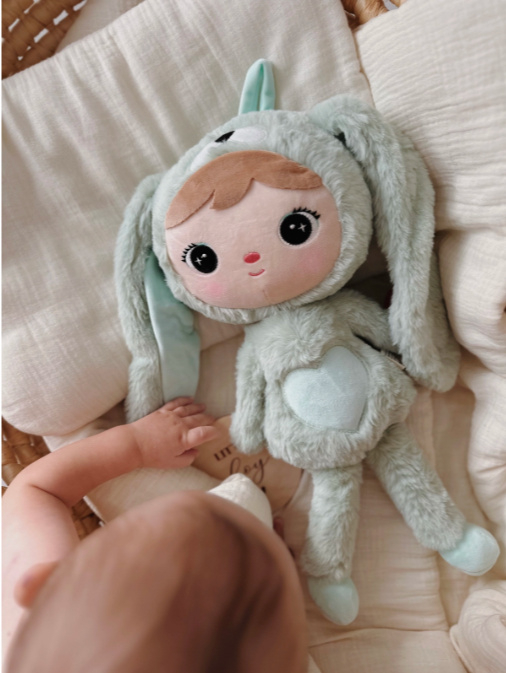 Het konijntje is heel populair bij de kinderen. Bovenaan is er een lusje wat het meenemen heel handig maakt. Op deze manier kan het ook decoratief aan de muur gehangen worden.